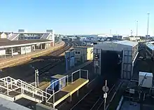 Fratton railway station was planned and built to serve as an interchange station between Portsmouth and the new one-and-a-quarter mile (2 km) long Southsea Railway branch line, built to serve the fashionable Victorian seaside resort of Southsea. It was built with an additional island platform to the south of the station's three main platforms, which specifically served the Southsea Railway and was reached by a staircase leading from the main overhead footbridge.[6] This island platform and staircase was removed after the Southsea Railway was closed, its former location now has a modern train washing facility built over it.