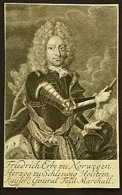 Frederick of Schleswig-Holstein-Sonderbourg-Wiesenbourg (Hasselhecke, Hessen-Homberg, 2 February 1652 - Wiesenburg Castle, 7 October 1724) was the 2nd Duke of Schleswig-Holstein-Sonderburg-Wiesenburg and an Imperial Field Marshal.