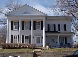 It is a two-story L-shaped building on a stone foundation. It has a pedimented gable portico supported by four octagonal columns on its east side.[2]