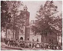 The college did not accept African-American students until 1964, when its president, Hubert A. Dixon, stated that black students would be admitted in response "to the mistake of accepting federal funds".[4] The first black graduate was Elizabeth Saunders in 1967.[5]