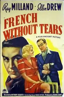 French Without Tears is a 1939 British comedy film directed by Anthony Asquith and starring Ray Milland. It was based on the 1936 play of the same name by Terence Rattigan, who also co-wrote the script. An on-off working relationship between Asquith and Rattigan began with this film and continued over the next 15 years.[1][2]
