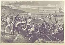 A later mention by Sir John Oglander evidently paraphrases du Bellay: "They landed at three several places at one time, purposely to divide our forces. Pierre Strosse landed at St Helens where there was a little fort, and beat our men, being divided from the fort, into the woods. Le Seigneur de Tais, General of the Foot, landed at Bonchurch, where there was a hot skirmish between them and us, and on either party many slain."[11]