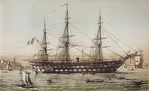 Her keel was laid in Lorient in 1827. She stayed abandoned in an unbuilt state for several years before being completed as a steam ship. She was eventually launched on 15 February 1854.