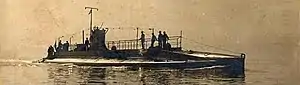 The submarine was armed with four 450 mm (17.7 in) torpedo tubes and a 75 mm (3.0 in) L/34 M1897 deck gun.[2] The crew consisted of 31 officers and seamen.[4][3]
