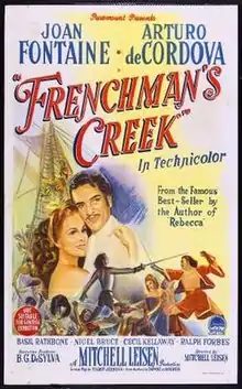Frenchman's Creek is a 1944 adventure film adaptation of Daphne du Maurier's 1941 novel of the same name, about an aristocratic English woman who falls in love with a French pirate. The film was released by Paramount Pictures and starred Joan Fontaine, Arturo de Córdova, Basil Rathbone, Cecil Kellaway, and Nigel Bruce. Filmed in Technicolor, it was directed by Mitchell Leisen. The musical score was by Victor Young, who incorporated the main theme of French composer Claude Debussy's Clair de Lune as the love theme for the film.