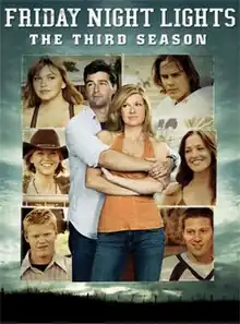 The third season of the American serial drama television series Friday Night Lights began airing in the United States and Canada on October 1, 2008. It was the first season to be aired on DirecTV's The 101 Network. The 13-episode season concluded on The 101 Network on January 14, 2009, and then began its run on NBC two nights later, on January 16, 2009, and concluded its NBC run on April 10, 2009. The show was renewed for two more seasons in March 2009, with both seasons airing in the same format as season 3, containing 13 episodes each.[1] The third season was released on DVD in region 1 on May 19, 2009.[2]