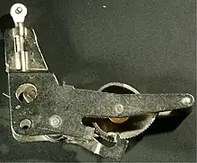 Below the cam in this photo (hidden) was a spring-loaded lever that pushed against a pin on the cam. On the upper edge of the cam, as shown, was a little projection that engaged the release lever, which was at the lowest part of the image; this was an irregular shape.
