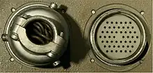 There was a holder for a large roll of paper tape on the back of the unit, with tape feeding around to a punch on the left side, toward the rear. The tape reader was on the same side, toward the front, and was essentially identical to the reader shown on the front of the square housing in the photo of the auxiliary reader. The right side of a Flexowriter had a large (~1") connector for hooking the unit up to computers and other equipment. Depending on the model, this connector might be wired in many different ways.