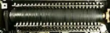 The basic mechanism looked just like an IBM electric typewriter from the late 1940s. In fact, some Flexowriter parts were identical in fit and function to the early IBM electric typewriters (those with rotary carriage escapements, a gear-driven power roll, and a governor-controlled variable speed "universal" (wound-rotor/commutator) motor).