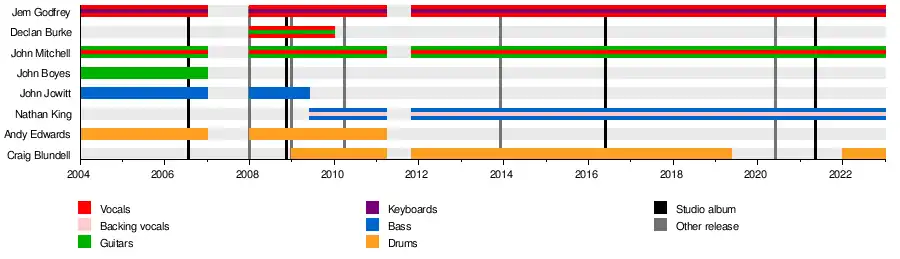 Subsequent to RoSfest, Dec Burke left the band. Jem Godfrey, John Mitchell and Nathan King performed some low key gigs as a drummerless trio before recruiting new drummer Craig Blundell.