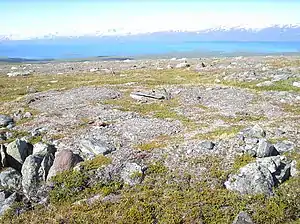A frost boil, also known as mud boils, a stony earth circles, frost scars, or mud circles,[1] are small circular mounds of fresh soil material formed by frost action and cryoturbation. They are found typically found in periglacial or alpine environments where permafrost is present, and may damage roads and other man-made structures.[2] They are typically 1 to 3 metres in diameter.[3]