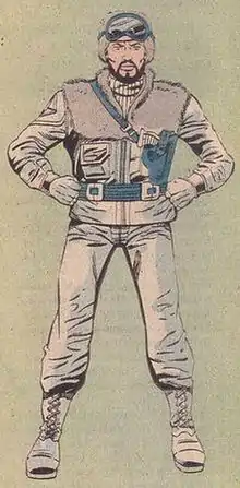Frostbite was first released as an action figure in 1985, packaged with the "Snow Cat" arctic assault half-track vehicle.[3][4] The figure was repainted and released as part of the "Tiger Force" line in 1988, packaged with the "Tiger Cat" covert assault half-track.[5][6] A new version of Frostbite was released in 1993, as part of the "Battle Corps" line.[7]