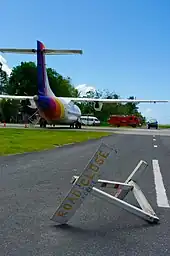 The airport is somewhat unusual due to limited space on the island, the runway is used as a common area for sporting and social activities when not in use. Sirens sound when a plane is landing, warning civilians to stay clear of the runway.[20]