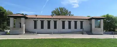 The Foundation is based in the old school buildings of Cerezales del Condado, constructed in 1931 and restored in 2009 with a major reorganization of the interior to accommodate activities of all kinds.[2] The result is a multipurpose space whose design allows it to be used as an exhibition gallery, an auditorium with stage, a classroom and administration offices, depending on the arrangement of its partitions.[8][9] In the landscaped area next to the building are three sculptures belonging to the foundation's collection of public art: Maternity by Castorina Fe Francisco, Whisper in Time by Tadanori Yamaguchi, and Large Goat by Eduardo Arroyo.[10]