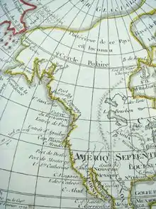 Mention of Fusang ("Fousang des Chinois") on a 1792 French world map, in the area of modern-day British Columbia.
