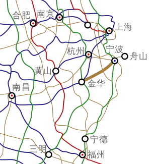 The G1512 Ningbo–Jinhua Expressway (Chinese: 宁波—金华高速公路), commonly referred to as the Yongjin Expressway (Chinese: 甬金高速公路), is a 185.56-kilometre-long expressway (115.30 mi)[1] that connects the cities of Ningbo and Jinhua in the Chinese province of Zhejiang. The expressway is an auxiliary route of G15 Shenyang–Haikou Expressway. This expressway was opened on December 28, 2005.[2]