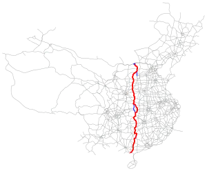 The Hohhot–Beihai Expressway (Chinese: 呼和浩特–北海高速公路), designated as G59 and commonly referred to as the Hubei Expressway (Chinese: 呼北高速公路; not to be confused with the province of Hubei), is an incomplete expressway in China. It is a major north–south expressway that when complete, will connect the cities of Hohhot, the capital of Inner Mongolia, with Beihai, on the southern coast, in the autonomous region of Guangxi. The expressway was announced as one of the eleven primary north–south expressways in China's expressway network on 24 May 2013.[2]
