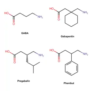 ![]() Gabapentin, the prototypical gabapentinoid | |