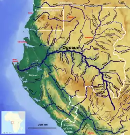 Map of River Ogooué and surrounding rivers of Gabon