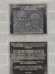 In 2000, Brigham Young University (BYU) announced that the Millers had made a significant financial contribution towards the new 4,000-seat, $7 million baseball and softball complex. Built on campus, the project was named Miller Park and the softball field was christened Gail Miller Field and the baseball field is called Larry H. Miller Field.[41]