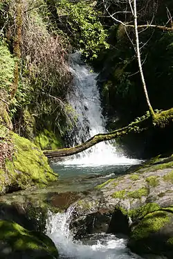 The Galbreath Preserve lies in the upper Rancheria sub-basin of the Navarro Watershed, and contains 1st, 2nd, 3rd, 4th, and 5th[4] order streams. Rancheria Creek flows northward through the Preserve and drains into the Navarro River. Rancheria Creek dries up during the summer, but its tributaries, such as Yale Creek, which lie in steep canyons, can remain wet throughout the summer. Since 1951, a USGS stream flow gage has been maintained about nine miles upstream of the mouth of the Navarro.[4] Throughout the Navarro watershed, recent alluvium, stream channel, and terrace deposits provide groundwater recharge to surface streams and supply wells and springs. Only minor amounts of groundwater are contributed by the Franciscan Formation. Flows dry up in tributaries during summer months, with the only surface water present derived from springs. Only the mainstem Navarro River, North Fork Navarro River, and lower reaches of Anderson, Rancheria, and Indian Creeks contain year-round surface water.