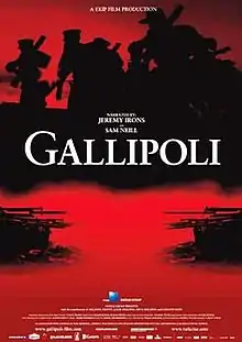 Gallipoli (Turkish title Gelibolu) is a 2005 Turkish documentary film written and directed by Tolga Örnek. It is a documentary about the 1915 Gallipoli campaign, narrated by both sides, the Turks on one side and the British soldiers and Anzacs (soldiers of the Australian and New Zealand Army Corps) on the other side.