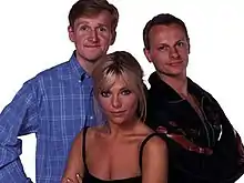 Second and third series cast, from left: Martin Henson (Matthew Cottle), Mandy Wilkins (Samantha Womack née Janus), and Matthew Malone (Neil Stuke).