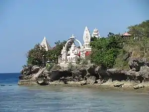 Hindus spread through Maritime Southeast Asia and took their culture with them, including Ganesha,[23] statues of whom are found throughout the region, often beside Shiva sanctuaries. The forms of Ganesha found in Hindu art of Java, Bali, and Borneo show specific regional influences.[24] The gradual emigration of Hindus to Indochina established Ganesha in modified forms in Burma, Cambodia, and Thailand. In Indochina Hinduism and Buddhism were practiced side by side, and mutual influences can be seen in Ganesha iconography of that region.[25]