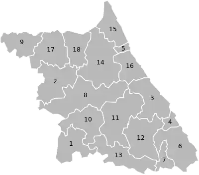 | 12 | Jeongseon County | 정선군 | 旌善郡 | 38,993 | 4 eup, 5 myeon | |