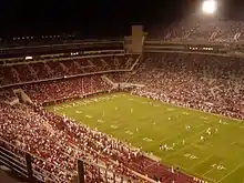 Garbage time in the fourth quarter of a decided game (the USC Trojans lead the Washington Huskies 49–0); as a result of the home team's assured victory, the announced crowd of over 80,000 has dissipated.