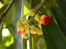 The fruit contains citric acid, tartaric acid, malic acid and ascorbic acid, hydroxycitric acid, and flavonoids.[2]