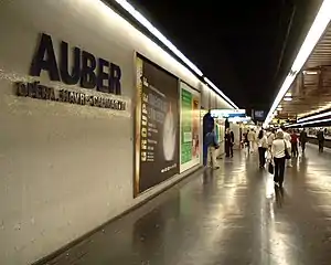 Auber station (French pronunciation: [obɛːʁ]) is a station on RER A in Paris. Opened on 23 November 1971 and inaugurated during a ceremony by singers Dalida and Adamo, it is one of the largest vaulted underground stations in the world.