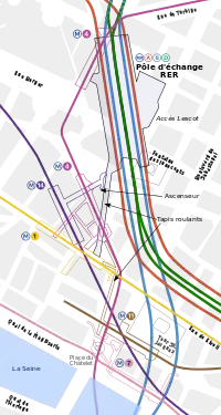 - ↑ "Réaménagement du pôle RER Châtelet-Les Halles (presentation)" (PDF) (in French). Syndicat des Transports d'Île-de-France. Archived from the original (PDF) on 8 July 2011. (4.04 MB)