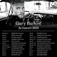 Gary Barlow in Concert (also known as The Theatre Tour) was a concert tour by British singer-songwriter Gary Barlow. The 49-date tour around the United Kingdom and Ireland began on 16 April 2018 in Edinburgh, Scotland and concluded on 23 June 2018 in Nottinghamshire, England. Tickets on sale were sold out in less than a day due to high demand.[1][2]