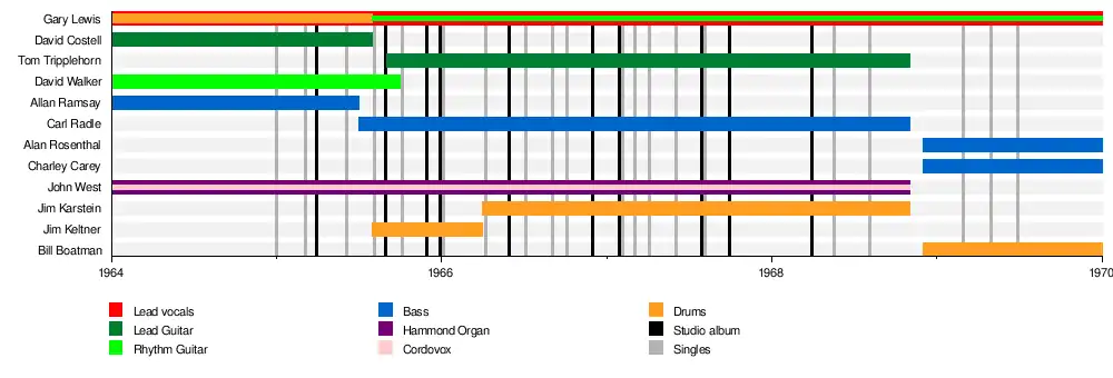 - Gary Lewis - (born Gary Harold Lee Levitch, July 31, 1945, Newark, New Jersey - drums (1964-1965) guitar (1965-1970) and vocals (1964-1970)