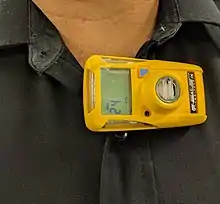 The United States Consumer Product Safety Commission has stated, "carbon monoxide detectors are as important to home safety as smoke detectors are," and recommends each home have at least one carbon monoxide detector, and preferably one on each level of the building.[71] These devices, which are relatively inexpensive[101] and widely available, are either battery- or AC-powered, with or without battery backup.[102] In buildings, carbon monoxide detectors are usually installed around heaters and other equipment. If a relatively high level of carbon monoxide is detected, the device sounds an alarm, giving people the chance to evacuate and ventilate the building.[101][103] Unlike smoke detectors, carbon monoxide detectors do not need to be placed near ceiling level.