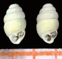 | Two views of one shell of Gastrocopta new species from the Viernheim research borehole, Scale bar is in mm | |