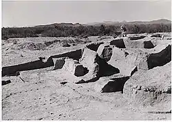 The Gatlin Site is an archaeological site in Gila Bend, Arizona. The site preserves one of the few documented Hohokam platform mounds. Associated with the mound are pit houses, ball courts, middens, and prehistoric canals. Between AD 800 and 1200 it was an important Hohokam settlement at the great bend of the Gila River. The Hohokam people were the first farmers in southern Arizona, where the permanent Salt and Gila Rivers flowing through the hot Sonoran Desert made the irrigation strategy possible.[3] The site is the largest in the area and was home to over 500 people. Its importance is indicated by the presence of two ceremonial ball courts and one of the earliest platform mounds known.[4] The mound is notable as being one of only few excavated and documented Sedentary Period platform mounds still relatively intact.[2] The site was declared a National Historic Landmark in 1964.[2]