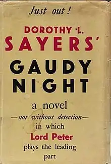 Gaudy Night (1935) is a mystery novel by Dorothy L. Sayers, the tenth featuring Lord Peter Wimsey, and the third including Harriet Vane.