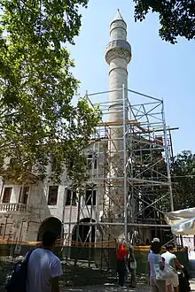 The minaret and fountain were both damaged in the 2017 Aegean Sea earthquake that hit Kos, leaving both in need of restoration; the main building also remains awaiting a large-scale restoration campaign.[5]