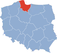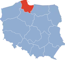 Upon dissolution of the Masurian District on 25 September 1945, Gdańsk Voivodeship incorporated its part containing the territories of the former Regierungsbezirk Westpreußen, namely the counties of Elbląg, Kwidzyn, Lębork, Malbork, and Sztum, as well as the counties of Bytów, Miastko, Sławno, and Słupsk from the District of the Western Pomerania.[8] On 28 June 1946, the counties of Bytów, Miastko, Sławno, and Słupsk, were incorporated into the Szczecin Voivodeship, and later transferred on 8 July 1950 to the newly established Koszalin Voivodeship.[9] In 1946 it had an area of 10 725 km²,[10] and a population of 732 150 people.[11]