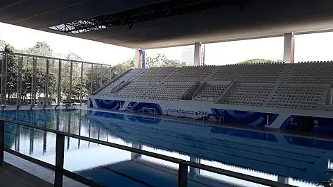 The Gelora Bung Karno Aquatic Stadium (Indonesian: Stadion Akuatik Gelora Bung Karno) is an aquatics stadium in the Gelora Bung Karno Sports Complex in Gelora, Central Jakarta, Indonesia. It has a capacity of 7,800.[1] It is used mostly for swimming and water polo events. The stadium was used during the 2018 Asian Games and Asian Para Games.