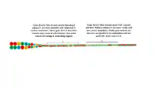 The variability in distance demonstrates that distance may be another important factor that is determined by gene deserts. For instance, distal enhancers may interact with their target promoters through looping interactions which must act over a certain distance.[7] Thus, proximity is not an accurate predictor of enhancers: enhancers do not need to border their target sequence to regulate them. While this leads to a variation in distances, the average distance between transcription start sites and the interaction complex mediated by their enhancer elements is 120 kilobases upstream of the start site.[7] Gene deserts may play a role in constructing this distance to allow maximal looping to occur. Given that the mechanism of enhancer complex formation is a fairly simply regulated mechanism (the structures that are recruited into the enhancing complex have various regulatory controls that control construction), more than 50% of promoters have several long-range interactions. Certain core genes even have up to 20 possible enhancing interactions. There is a curious bias for complexes to form only upstream of the promoters.[7] Thus, given the correlation that many regulatory gene deserts appear upstream of their target promoters, it is possible that the more immediate role that gene deserts play is in long-range regulation of key sequences. As the ideal formation of enhancer interactions requires specific constructs, a possible side-product of the regulatory roles of gene deserts may be the conservation of genes: to retain the specific lengths of loops and order of regulating genes hidden in gene deserts, certain portions of gene deserts are more highly conserved than others when passing through inheritance events. These conserved noncoding sequences (CNS) are directly associated with syntenic inheritance in all vertebrates.[8] Thus, the presence of these CNSs could serve to conserve of large regions of genes. Although distance may vary in regulatory gene deserts, distance appears to have an upper limit in conservative gene deserts. CNSs were initially thought to occur close to their conserved genes: earlier estimates placed most CNSs in proximity of gene sequences.[8] However, the expansion of genetic data has revealed that several CNSs reside up to 2.5 megabases from their target genes, with the majority of CNSs falling between 1 and 2 megabases. This range, which was measured for the human genome, is varied among different species. For instance, in comparison to humans, the Fugu fish has a smaller range, with an estimated maximum distance of a few hundred kilobases. Regardless of the difference in lengths, CNSs work in similar methods in both species.[8] Thus, as functions differ between gene deserts, so do their contents.