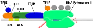 - TFIIB – recognizes the B recognition element (BRE) in promoters