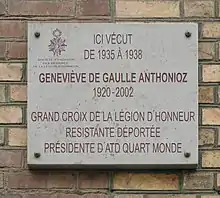 - ↑ "Geneviève de Gaulle Anthonioz". ATD (Agir Tous pour la Dignité) Quart Monde.