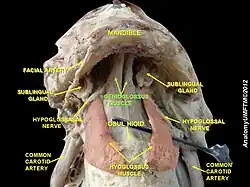 Blood is supplied to the sublingual branch of the lingual artery, a branch of the external carotid artery.[1][4]