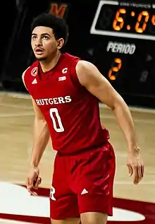 As a freshman, Baker was a regular starter for Rutgers, joining Corey Sanders in the backcourt.[8] On November 21, 2017, he scored a career-high 29 points, shooting 7–of–10 from three-point range, in an 83–54 win over Bryant. He recorded the most single-game points and three-pointers by a Rutgers freshman since Todd Billet in 2000.[9] On December 9, Baker posted his first double-double with 19 points and 11 assists in a 92–54 victory over Fairleigh Dickinson.[8] In his freshman season, he averaged 10.9 points, 2.6 assists and 2.2 rebounds per game and was named Metropolitan Basketball Writers Association Rookie of the Year.[10]
