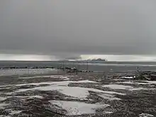Heiss Island and Komsomol Island lie southeast of Zichy land. The Austria Strait separates Hall Island from Komsomol and the large Wilczek Island further to the northeast.[7] Heiss Island, also known as Kheysa or Chejsa island, is bound within latitude 80.55° N and longitude 57.50° E. It encompasses an area of 132.3 square kilometres (51.1 sq mi). Its mapped shore length is 55.2 kilometres (34.3 mi).[10] The abandoned Kheysa, Soviet rocket launching site, was located on this island.[17] In the Geophysical Year 1957–58, a new meteorological station, which over the years became the largest such station, was established on the banks of a small crater lake in the ice free zone of this island and named after Ernst Krenkel, an Arctic explorer. The station was closed in 2000 and abandoned buildings are still seen here. Another weather station was established in 2005. The island is named after the Arctic explorer, Isaac Israel Hayes.[18]