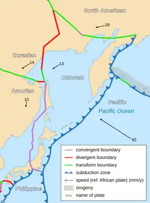 Map of the Okhotsk Plate and its neighbouring plates.