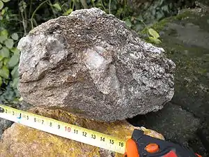 The series starts in the Lower Viséan with shaly to sandy sediments, followed by greywackes, conglomerates and carbonates in the Middle Viséan (the Tournaisian is generally missing in the Massif Central, exceptions being some scattered occurrences in the Morvan). Very important are the transgressing Tufs anthracifères in the Upper Viséan (dated between 335 and 330 MA BP).[3] They consist of pyroclastic tuffs with rhyolitic or dacitic composition, cover a large area and reach large thicknesses. The name is derived from occasional interbedded anthracite layers that indicate a paralic environment near a shallow sea.
